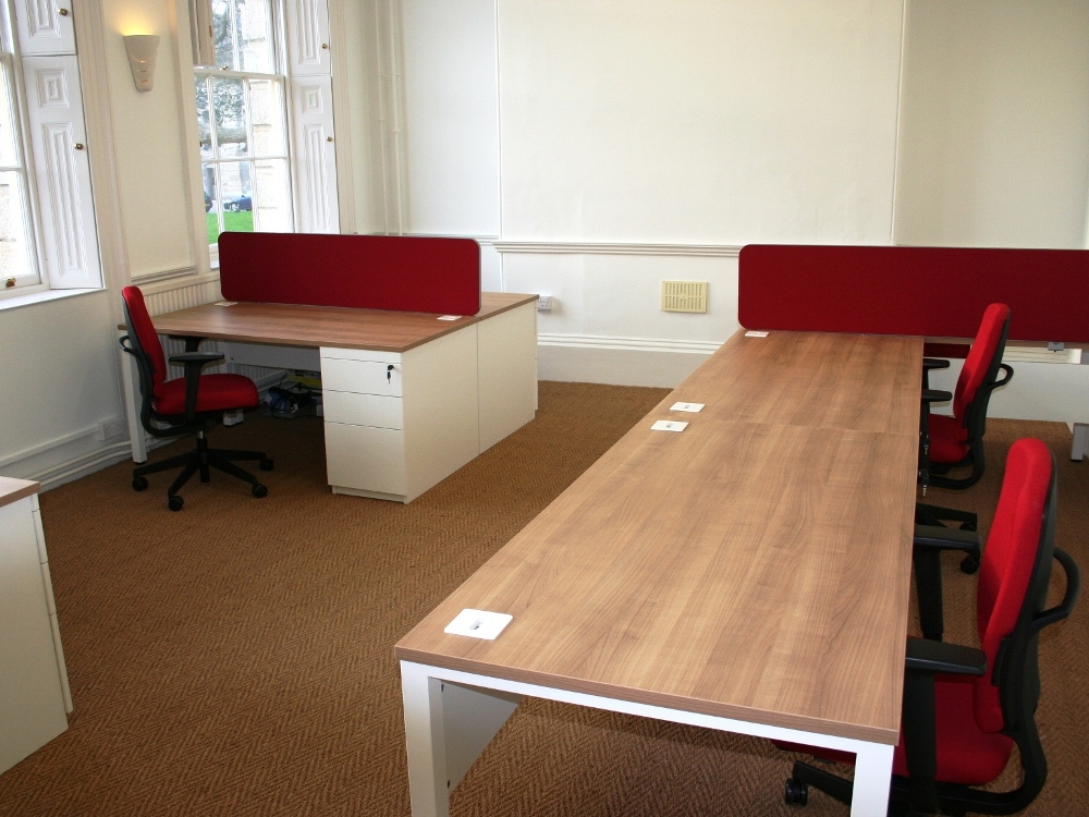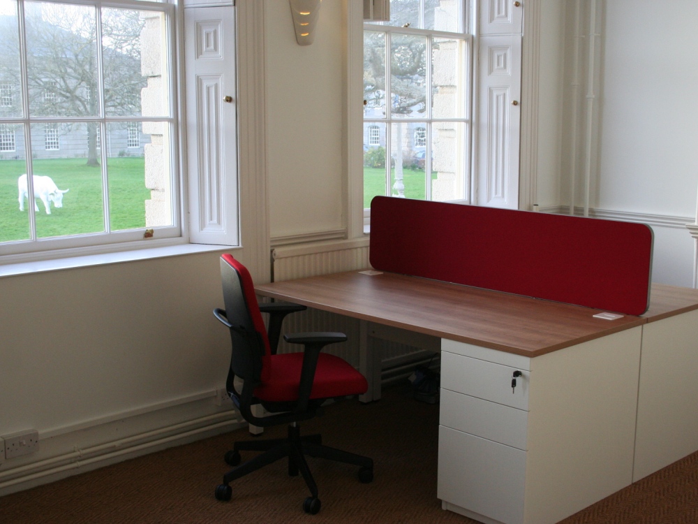 Graphic design company Altitude approached Karris to furnish their new premises at the prestigious Royal William Yard in Plymouth. Whilst the building is steeped in history, Altitude wanted to create a modern and minimalist environment to work in. With a combination of oak tops and white metalwork, and a splash of red fabric, the finished layout successfully mixes both modern and traditional styles.